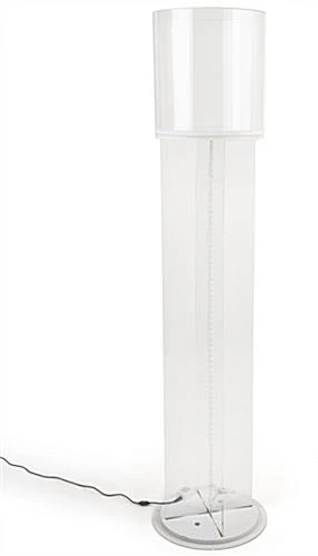 The acrylic and corrugated cardboard build is easy to assemble and lightweight, yet strong enough to hold a single item of up to 35lbs beneath the clear lift-off cylindrical top.