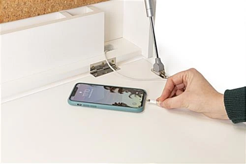 Our wall-mounted floating desk is the perfect space-saving workstation for your home office, studio apartment, medical exam room, or small business space. The folding laptop stand features cork board backing for easy pinning of calendars, photos, reminders, and more! This modern wall-mounted floating desk also has a built-in cord hole, allowing you to quickly charge your phone or computer without any cords or cables getting in your way when you work. The space-saving design has a small footprint, allowing you to maximize productivity in even the remotest areas while also providing you with practical storage for pens, papers, and files. This unit’s folding construction allows you to fold the desk part up and out of the way using the convenient magnetic catch. This laptop stand comes with two zinc-plated steel Z bars for easy mounting to most wall materials. Our compact wall-mounted floating desk will make it easy to turn any space in your house into a productive home office!