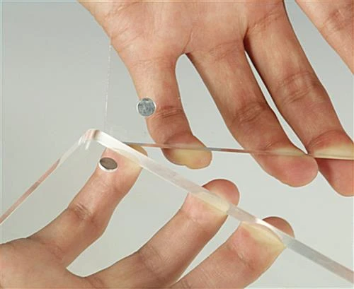 These magnetic photo holders are made from two 3/8″ acrylic blocks and feature a clear double sided view. 4 super strong magnetic pegs help to hold photos tightly in between the two panels. These magnetic photo holders, also known as polished heavyweight magnet frames have a professional finish, can be used in either landscape or portrait orientation.