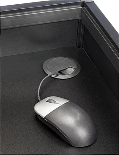 This checkout counter, cash wrap furniture that stands 38″ tall is the ideal height to encourage interaction between store associates and patrons. It is often used as a check out stand, with a PC or touch-screen monitor and money drawer. The podium-style case could even be used as a hostess or valet station. The display includes many great features to ensure longevity and ease of use. The large drawer includes a lock & keys to secure money or valuables. There is also a shelf that is fully height-adjustable to store items or keep back-stock of varying heights. Three cord-management holes are vertically aligned within all horizontal surfaces to keep cords and wires neat. Adjustable floor levelers ensure the store fixture is stable, even when placed on virtually any surface. This light weight case ships fully assembled.