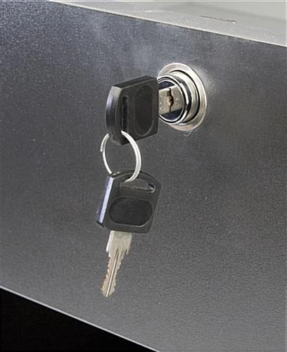 This checkout counter, cash wrap furniture that stands 38″ tall is the ideal height to encourage interaction between store associates and patrons. It is often used as a check out stand, with a PC or touch-screen monitor and money drawer. The podium-style case could even be used as a hostess or valet station. The display includes many great features to ensure longevity and ease of use. The large drawer includes a lock & keys to secure money or valuables. There is also a shelf that is fully height-adjustable to store items or keep back-stock of varying heights. Three cord-management holes are vertically aligned within all horizontal surfaces to keep cords and wires neat. Adjustable floor levelers ensure the cash wrap furniture is stable, even when placed on virtually any surface. This light weight case ships fully assembled.