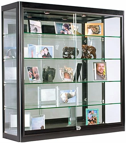 Mount this LED wall display cabinet in your shop to effectively showcase jewelry, collectables, and other high quality merchandise. Two top lights illuminate the products being shown for a professional looking design with increased noticeability. Each glass display cabinet features 10” deep shelves that adjust to hold larger and taller merchandise. The included hardware and double z-bar design makes mounting the case a breeze. Additionally, a high quality lock and key set prevents the sliding doors from being opened for extra peace of mind. Get a display cabinet for your store today and start featuring your products on tempered glass shelves with overhead lights.