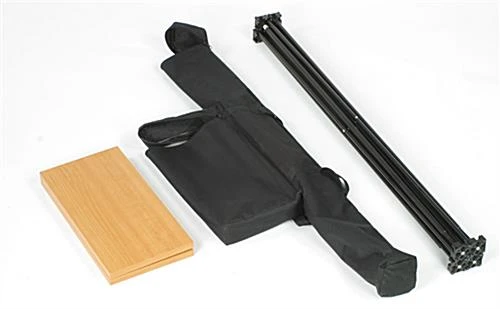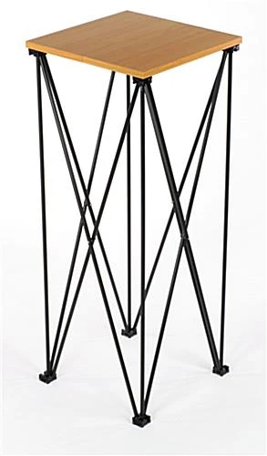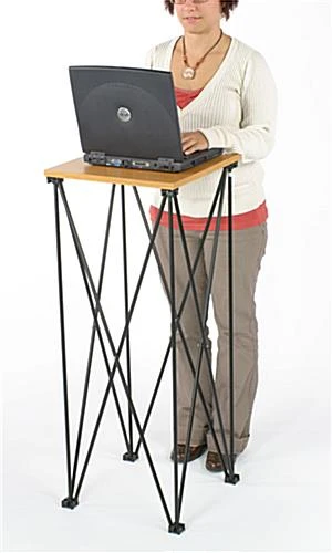 This inexpensive presentation furniture, portable laptop table is very versatile and comes at an unbeatable price. Use this demonstration stand for small venues. This portable laptop table can easily hold any laptop, speaker, projector or any other presentation equipment. Motivational speakers can use this small stand to hold notes or auxiliary equipment. This portable laptop table, computer stand is higher than most folding tabletops making it ideal for sign in guest books at special events or for displaying products at a trade show. The lightweight and folding design make this a favorite among exhibitors and travelling speakers. This portable laptop table, computer stand can be used by itself or can be complemented with any one of our wide selection of elegant lecterns. Also offered on this site is custom printed banner attachment for a customized look.