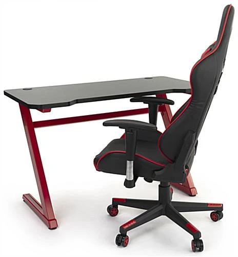 Ergonomic Gaming Z Desk with Floor Levelers and Red Powder-Coated Finish
