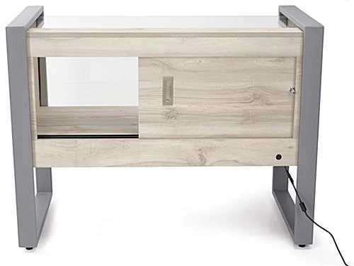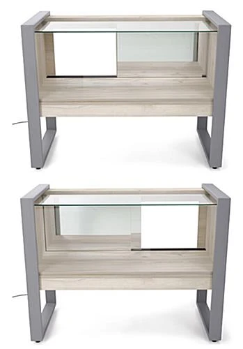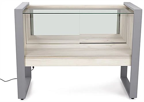 This modern tempered glass display counter with locking doors and LED lighting will be the perfect store display to securely showcase your valuable retail merchandise. The store fixture is made of durable steel and melamine, providing years of service. This tempered glass display counter ships fully assembled, eliminating assembly hassle. The locking mirrored doors reflect the back of the showcased items, giving your customers a full view of the wide variety of products. The LED lighting can be turned on/off with a rear switch and illuminates high-end merchandise from the top down. Adjustable feet provide stability on uneven flooring and mean that your display can be placed in a wide variety of locations throughout your retail store. This gray glass display counter offers a modern showcase for jewelry, boutique merchandise, and collectibles in a retail shop or museum store setting.