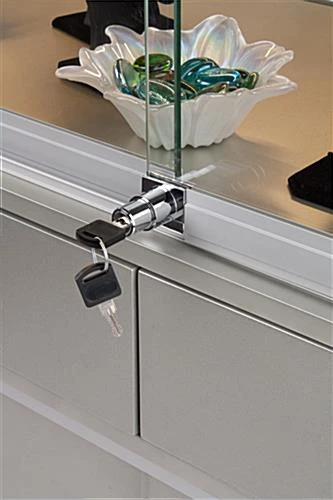 Each quarter vision glass jewelry display counter with LED-lights and a silver semi-gloss finish features (2) rear security drawers with locks as well as locking cabinets with sliding doors. Merchants use this space to store inventory or gift packaging as this storage area can be conveniently accessed in the back of each showcase. An LED-lit jewelry display counter with an attractive silver semi-gloss base also features floor levelers. The adjustable feet ensures the case will remain stable, even on slightly uneven surfaces. This retail jewelry display counter with LED-lights also features a recessed toe kick, so any accidental scuffs due to foot traffic will remain hidden from view! This showcase ships fully assembled for immediate use and is ideal for fine retail stores!