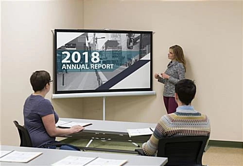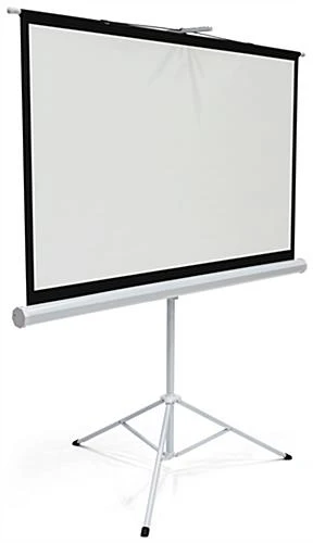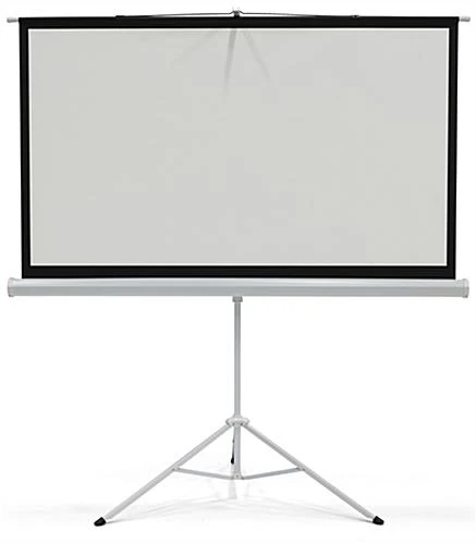 Present professional lectures or educational movies anywhere with this 72” tripod portable projection screen. The lightweight PVC and aluminum design makes transporting a breeze to showcase sales pitches in any conference room or auditorium. This manual portable projection screen has an aspect ratio of 16:9 and a black backing to eliminate light penetration. It has an easel style base for stability and can be collapsed to easily transport for a sophisticated display solution. With standard 4-side black masking borders and aspect ratio of 16:9, your movies or lectures will be framed professionally in any setting. The simple manual pull down mechanism and lightweight build create the ideal presentation solution. Ensure your lectures, lesson plans, or sales pitches are professionally demonstrated with this portable projection screen.