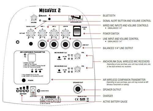 | Audio Input | (2) 1/4″ Unbalanced Mic Input, (1) 1/4″ Unbalanced Line Input, (2) Dual Wireless Mic Receivers |