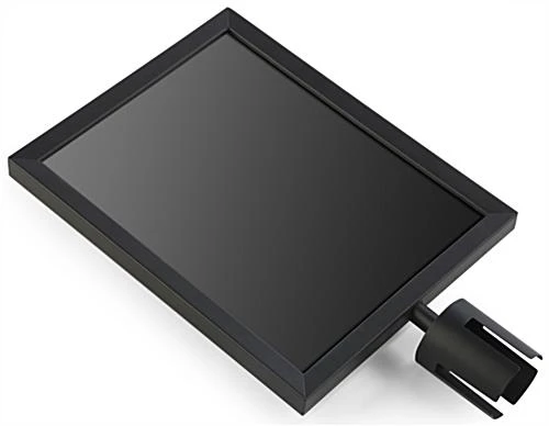 This black 11” x 14” stanchion sign frame mounts on top of our crowd control post (sold separately). Each signage display is crafted from steel construction ensuring long-term use in heavily trafficked environments. The double sided sign frame comes with a thick PVC backer which can be directly printed on at your local graphics shop for a more permanent display. Additionally, the crowd control signage features two anti-glares lenses which keep easily interchanged flyers free of tears and damage. The sign frame displays your message using common size printer paper in portrait orientation. Create interchangeable messages right from your home or office!