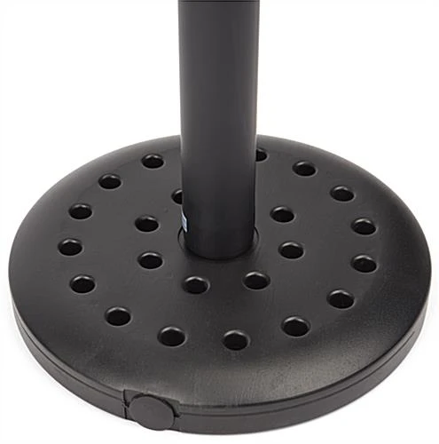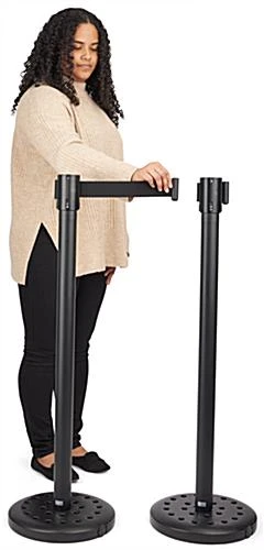 This weather-resistant retractable stanchion is ideal for your next outdoor concert, market, or community gathering. Our crowd control post has a 13″ round weighted base to ensure the unit’s stability during inclement climates. This black weather-resistant retractable stanchion has a 2″ nylon belt that extends 6.5′ to configure queue lines in large outdoor recreational centers, arenas, and venues. Minimal assembly is required, making for a quick and easy setup and breakdown time. The plastic cartridge has a 4-way belt receiver to provide expanded configuration options. Pair this unit with the optional QueuePole.Economy accessories such as toppers for paper signage, hand sanitizer gels, or literature. Our black weather-resistant retractable stanchion with a weighted base allows for hosting outdoor events without compromising on an effective crowd control post.