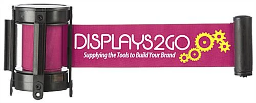This pink barrier retractable belt stanchion with 2-color printing turns an everyday, nondescript crowd control system into a branded marketing accessory for your business through custom graphics and messaging. Upload your logo and see it silkscreened across one or both sides of the 6.5’ nylon band so visitors can identify your booth from a distance. Thanks to the four-way belt receiver, this high-visibility pink barrier retractable stanchion with 2-color printing can easily be used to create a variety of crowd control arrangements. Simply extend the band from one cartridge and slide the plastic end onto the receiving slot of another – no tools or fussy adjustments required. The weighted base has a rubberized edge, which helps to prevent sliding and tipping when queue lines get especially busy. Place your custom logo or messaging onto this pink barrier stanchion with 2c printing to encourage more support and donations at breast cancer awareness events or simply help guests identify key areas.