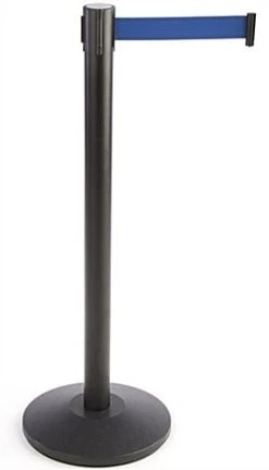 This steel stanchion, that has a blue retractable belt, can extend from 0” to 6’-7”. The post is constructed from sturdy, durable material. A steel stanchion, that has a heavy-duty base, will remain in place due to its weight. These crowd control systems feature black powder-coated material. Each steel stanchion, also known as a queue barrier, integrates seamlessly into any environment. This crowd control post is economically priced for an amazing value. A queue barrier, steel stanchion is seen in a variety of busy areas!