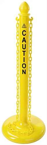 Use these plastic caution posts as portable safety signs for indoor or outdoor use as a warning to the public to avoid dangerous areas. Complete with a 6.5’ long chain and pre-printed message, this QueuePole.Outdoor stanchion arrives as an easy-to-assemble kit for immediate use. Set these yellow caution posts in an outdoor or indoor location to guide the public, such as at construction sites or restricted access areas. While traditional safety signs are either cumbersome or designed for permanent placement, this stanchion is lightweight for easy mobility and ideal for temporary situations. If needed, fill the hollow base with sand for up to 15.5 lbs of stability to help prevent tipping on windy days or in crowded spaces. As well, the chain is made of a series of links that connect to each of the caution posts via C-hooks to create barriers and help enforce your warning message.