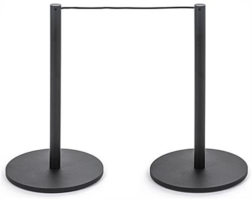 This 8-barrier black low profile stanchion system is the ideal crowd control method for securing safety lines around valuable exhibit pieces. It has powder coated stainless steel posts and 100 feet of sturdy barricade cord that can be customized to accommodate small visual creations or large statuesque pieces. This museum low profile stanchion system can be used for a full 18’ x 16’ display section or separated to organize smaller exhibit areas. For small sculpture areas cut the long cord into several pieces and divide between fewer stanchions or use the entire kit for a large safety border around classic cars. It is easy to assemble due to the removable top on each post that keeps knots hidden and secure after attaching. Each stainless steel pole is only 16”h for unobstructed views of artwork and the tight attachment of the rope will keep patrons at a safe distance. This stanchion system is the ideal crowd control method for any museum with its contemporary color, unobtrusive height, and ease of use. Give your clientele an unforgettable visit gazing at classic automobiles, historic sculptures and other specialty exhibits while keeping priceless artifacts safe with the 8 posts and 100’ elastic barricade cord.
