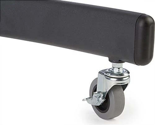 The black teleconferencing TV stand features 2 shelves for flat screen media equipment. A camera tray is affixed above a mounted monitor at 4” – 28” tall depending on the size of the screen, and rotates 360° into different positions for small or large video meetings. The unit also features an LCD TV stand that is 28” wide with an AV shelf that provides an area for storage or to display components such as DVD players, product samples, and lab equipment, with a height adjustable range of 13″ to 32″. The monitor cart can be modified to fit screens between approximately 37” and 70” accommodating units weighing less than 110 lbs. A tilting bracket of the TV stand is fixed in landscape orientation and can be positioned at varying angles for the comfort of the viewers. Roll this LCD cart for flat screens with a camera tray and an AV shelf between board rooms for different meetings and lock the casters in place to stabilize the unit.