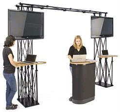 10×10 Trade Show Booth Kit W/ 3 Counters, 2 Truss TV Mounts – Black