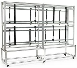 Video Wall Stand For (8) 49″ – 55″ TV Screens, Double-Sided, Wheels – Silver