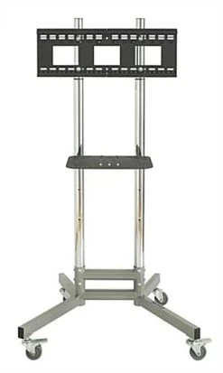 TV Cart With Height-adjustable Shelf, Fits Monitors 32 To 55″ – Silver