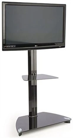 TV Stand With Shelf, Fits Monitors 32”-42”, Locking Wheels, Height Adjustable – Black